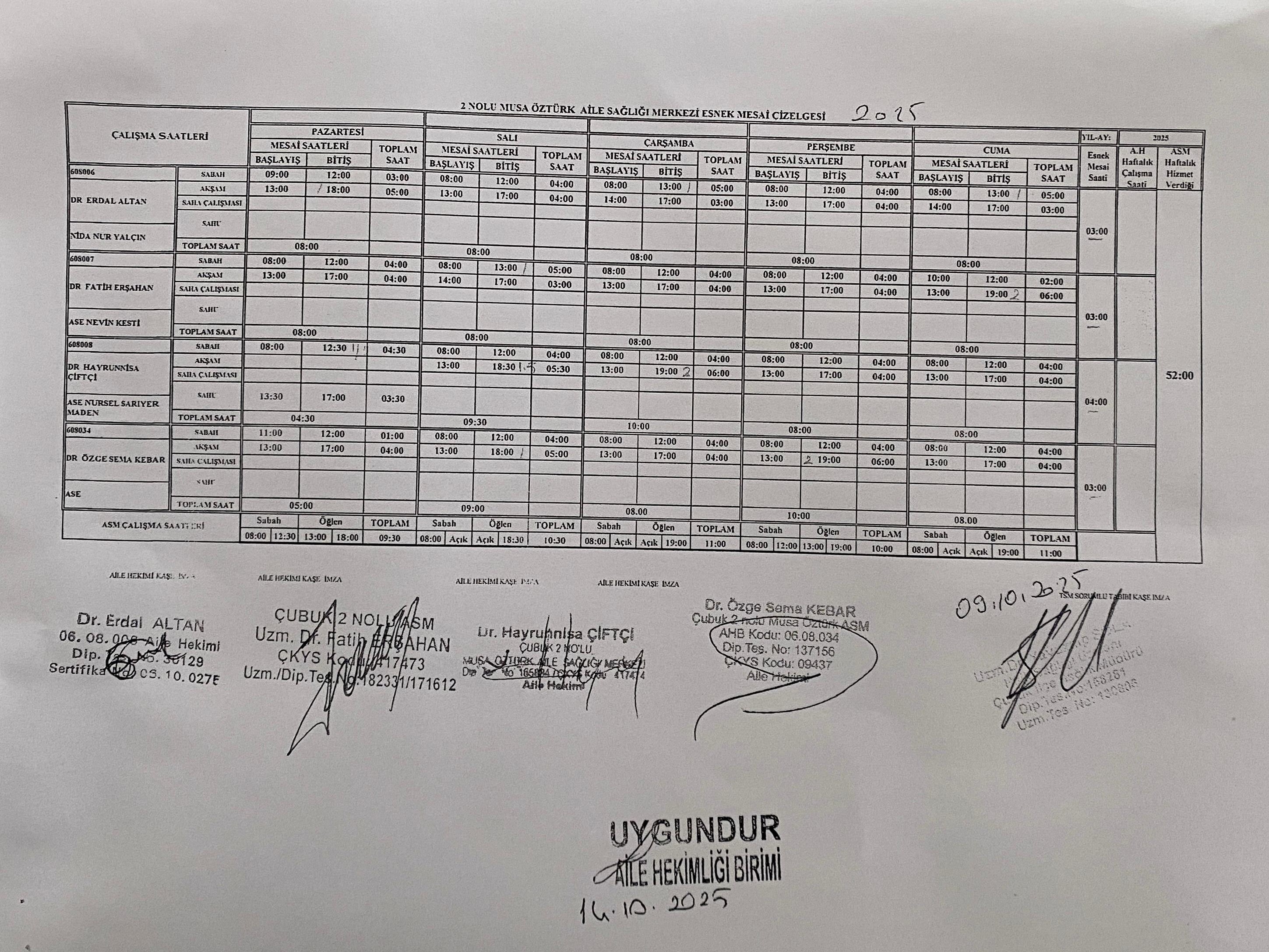 Çalışma Saatlerimiz